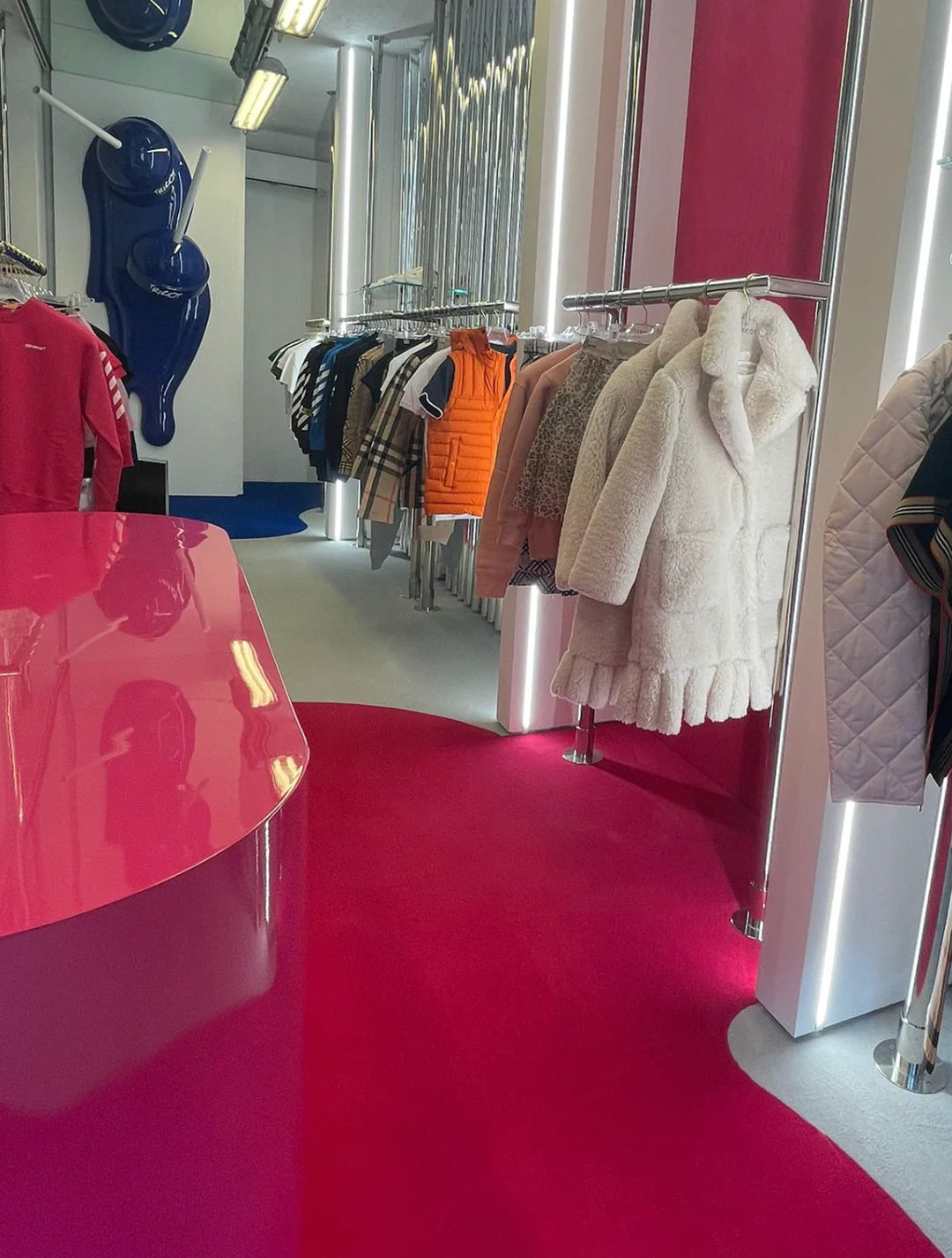 August 2022 marks the opening to luxury children's fashion, a market that has grown strongly in recent years in the wake of the "mini me", with a mix of top brands in line with the nature of the Boutique. The store project, conceived by a young Milanese designer with an urban imprint and a visionary soul, revolves around imposing and colorful lollipops - the most loved sweets by children and representative of the world of childhood - that stand out strongly on the walls and create an amazing, witty and welcoming atmosphere.